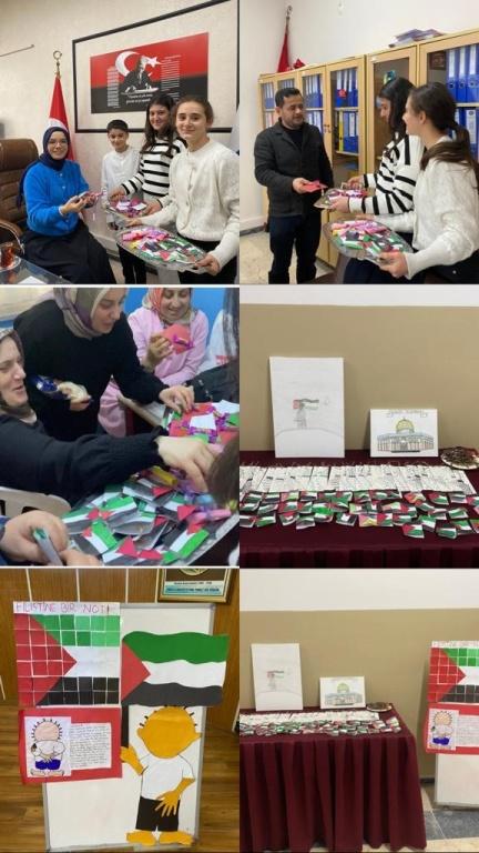 Çedes Projesi kapsamında 12.01.2024 tarihinde Filistin için farkındalık oluşturmak ve manevi olarak destek olmak amacıyla okulumuz konferans salonunda 5.ve 6.sınıf öğrencilerinin hazırlamış olduğu program gerçekleştirildi. Öğrencilerimizin hazırlamış olduğu Filistin temalı kitap ayraçları, bileklikler, boyamalar ve etkinlikler sergilendi. Okulumuz çalışanlarına öğretmenlerine ve öğrencilerine ikramlar yapıldı.