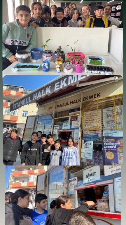 Çedes projesi kapsamında21.02.2024 -22.02.2024 tarihlerinde “yardımlaşma ve merhamet” değerlerini benimsetmek adına öğrencilerle ile birlikte askıda ekmek uygulamasına destek sağlandı. “iyilik yap denize at” atasözünden hareketle öğrenciler harçlıklarından ayırarak biriktirdikleri ile ihtiyaç sahipleri için ekmek ve hayvanların beslenmeleri için mama alarak yardımda bulundular. Hayvanları severek onlarla vakit geçirdiler. Öğrencilere tarihimizden yardım örneklerinden bahsedilerek yardımlaşmanın ve birlik olmanın önemiyle alakalı beyin fırtınası yapıldı. Öğrenciler atıkları geri dönüştürerek kendi saksılarını oluşturdular ve bitkilerini ektiler. Peygamberimizin yardımlaşmanın ve yardımda bulunmanın önemiyle alakalı hadislerinden bahsedildi ve bu durumun birey ve toplum üzerindeki etkilerinden bahsedildi.